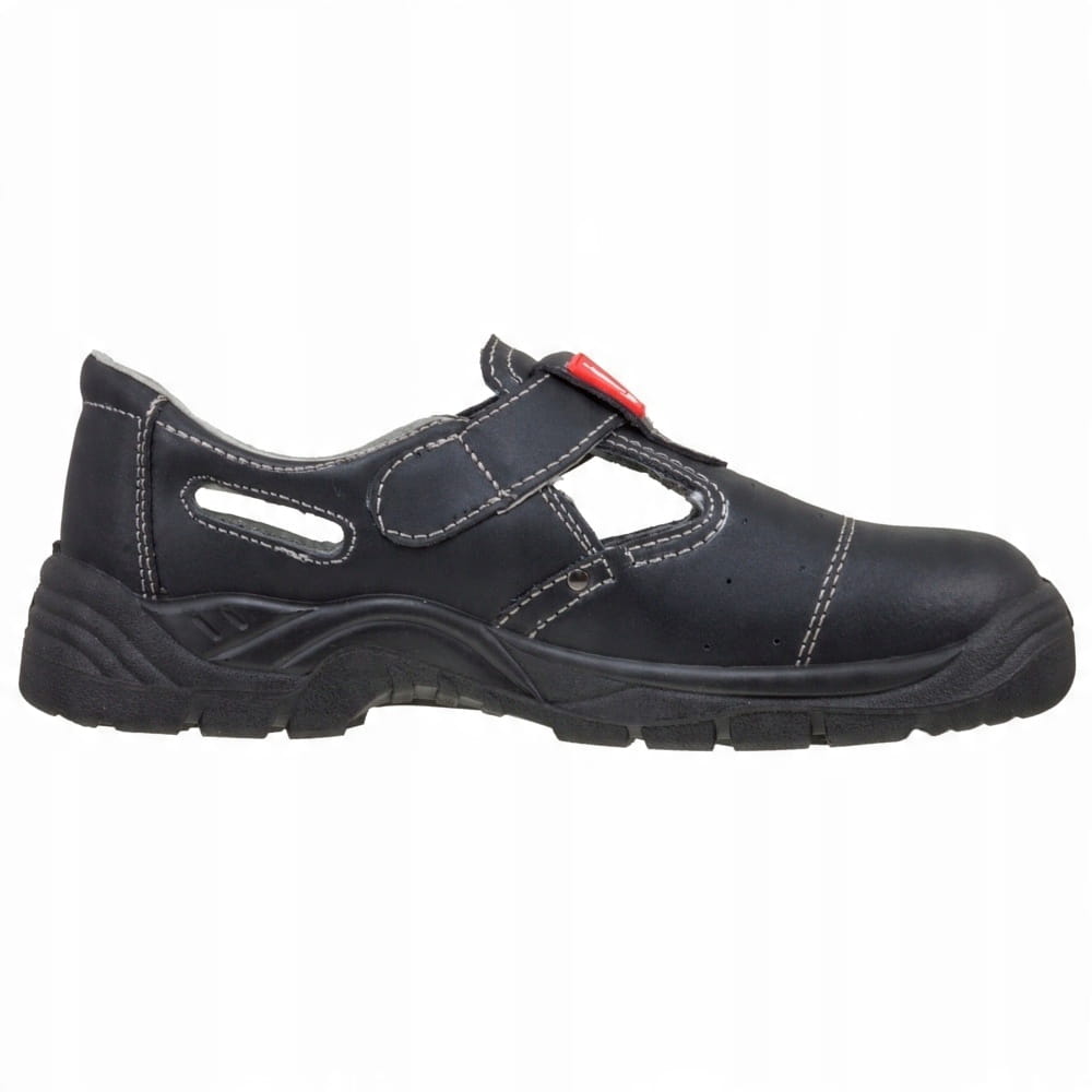 - sandał bezpieczny z metalowym podnoskiem Zamknięty obszar pięty, właściwości antyelektrostatyczne, absorpcja energii w pięcie.