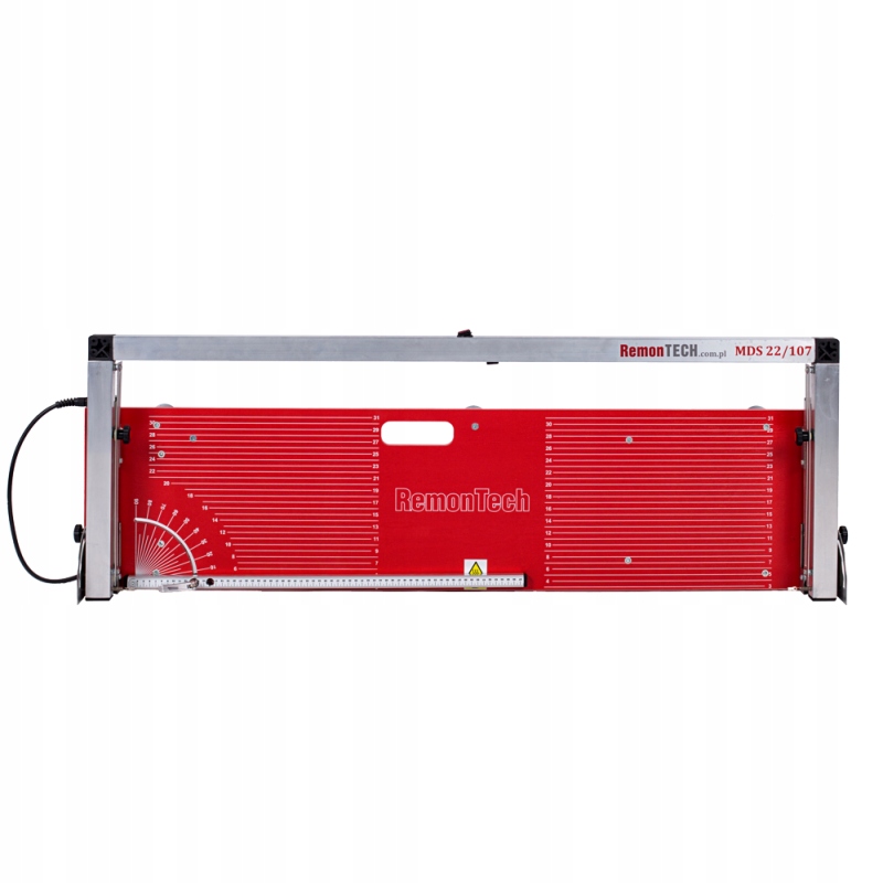 Maszyna do cięcia styropianu MDS 22/107 wyposażona jest w śruby zaciskowe prowadnicy umożliwiające blokadę ruchomego ramienia na żądanej wysokości, w zakresie między 0 a 22 cm ta funkcja pozwala na ścinanie płyt z grubości np. z 12 cm płyty dociąć płyty o grubości np. 5cm i 7 cm. Budowa urządzenia pozwala na ścinanie płyty z klina (np. na dachy, tarasy itp.) do 8 cm różnicy na długości płyty ( np. z jednej strony 8 cm, a z drugiej 16 cm grubości). Występujący w naszej maszynie włącznik chwilowy zabezpiecza drut tnący przed szybkim przepaleniem i zwiększa bezpieczeństwo podczas pracy.