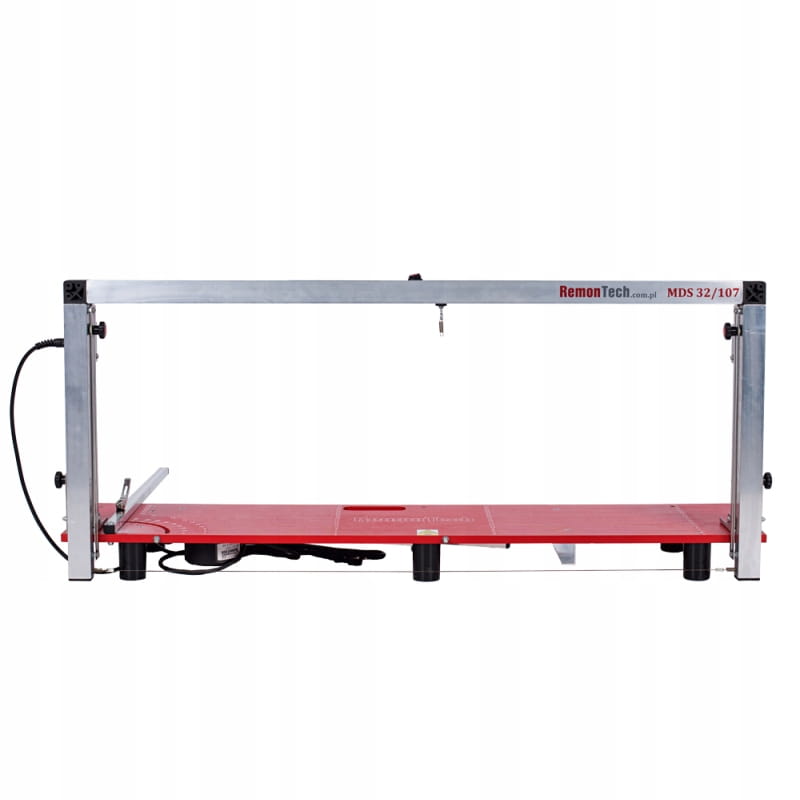 Pod blatem wycinarki zamocowany jest zaczep umożliwiający powieszenie maszyny na rusztowaniu oraz nogi, dzięki którym można postawić ją w pionie. Maszyna wyposażona jest w śruby zaciskowe prowadnicy umożliwiające blokadę ruchomego ramienia na żądanej wysokości, w zakresie między 0 a 32 cm, ta funkcja pozwala na ścinanie płyt z grubości, np. z 12 cm płyty dociąć płyty o grubości np. 5cm i 7 cm.