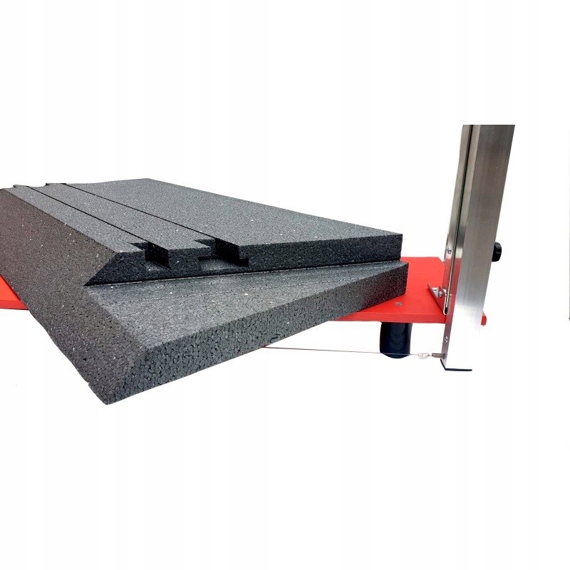 Konstrukcja naszej maszyny do styropianu pozwala na precyzyjne cięcie materiału. Wykorzystanie tej maszyny umożliwia ścinanie płyty z klina (np. na dachy, tarasy itp.) do 8 cm różnicy na długości płyty ( np. z jednej strony 8 cm, a z drugiej 16 cm grubości). Istnieje możliwość ustawienia różnych kątów cięcia, zarówno w pionie jak i w poziomie, w zakresie od 0-90 stopni. Maksymalna grubość ciętego materiału to 32 cm, a długość 107 cm.