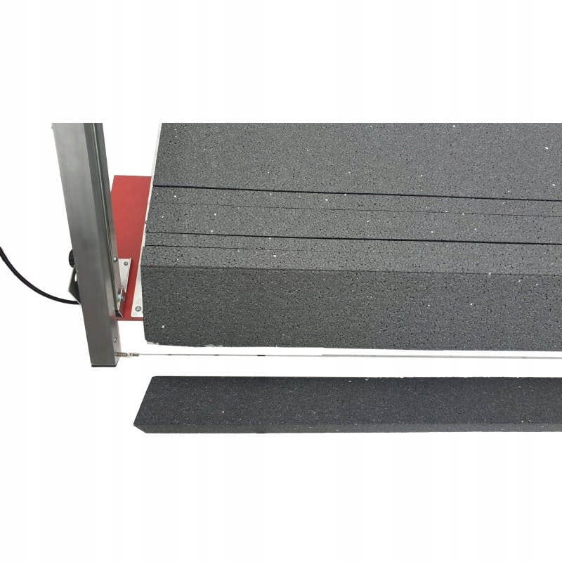 Maszyna do cięcia styropianu MDS 32/140 wyposażona jest w śruby zaciskowe prowadnicy umożliwiające blokadę ruchomego ramienia na żądanej wysokości, w zakresie między 0 a 32 cm, ta funkcja pozwala na ścinanie płyt z grubości, np. z 12 cm płyty dociąć płyty o grubości np. 5cm i 7 cm.
