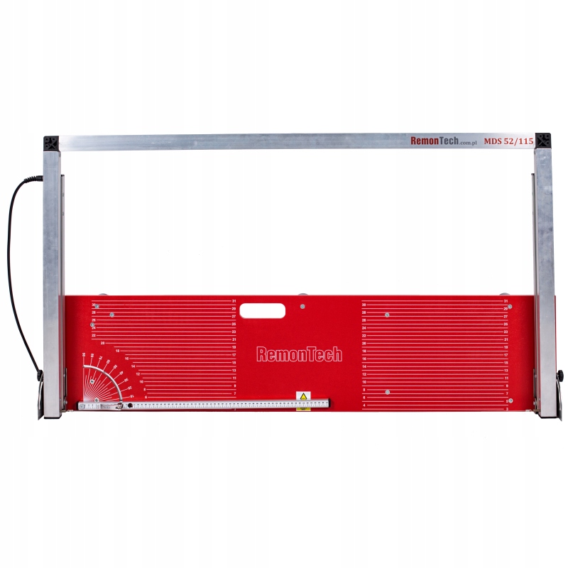 Blat roboczy maszyny MDS 52/115 wykonany jest z wodoodpornej sklejki pokrytej trzema warstwami emalii. Skala na blacie roboczym oraz podziałka prowadnicy ramy ruchomej wykonana jest w technice sitodruku natomiast pozostałe skale, podziałki i napisy ostrzegawcze są w formie zalaminowanych, odpornych na ścieranie nalepek.