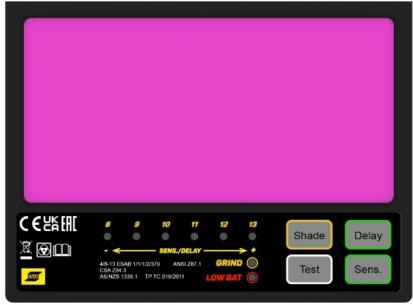 ✅ Zewnętrznie aktywowany przycisk trybu szlifowania. Tryb szlifowania przy stopniu zaciemnienia 4 DIN
