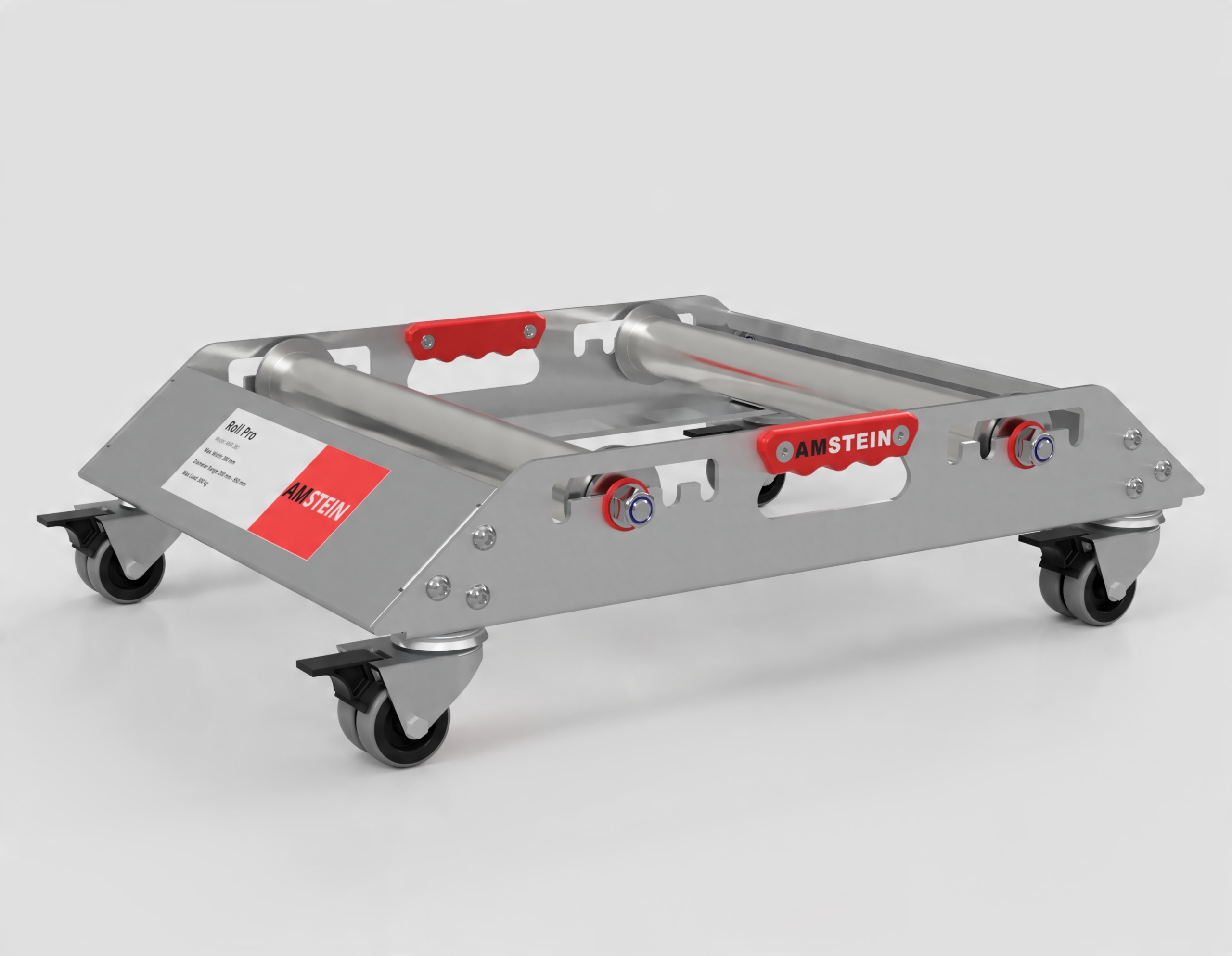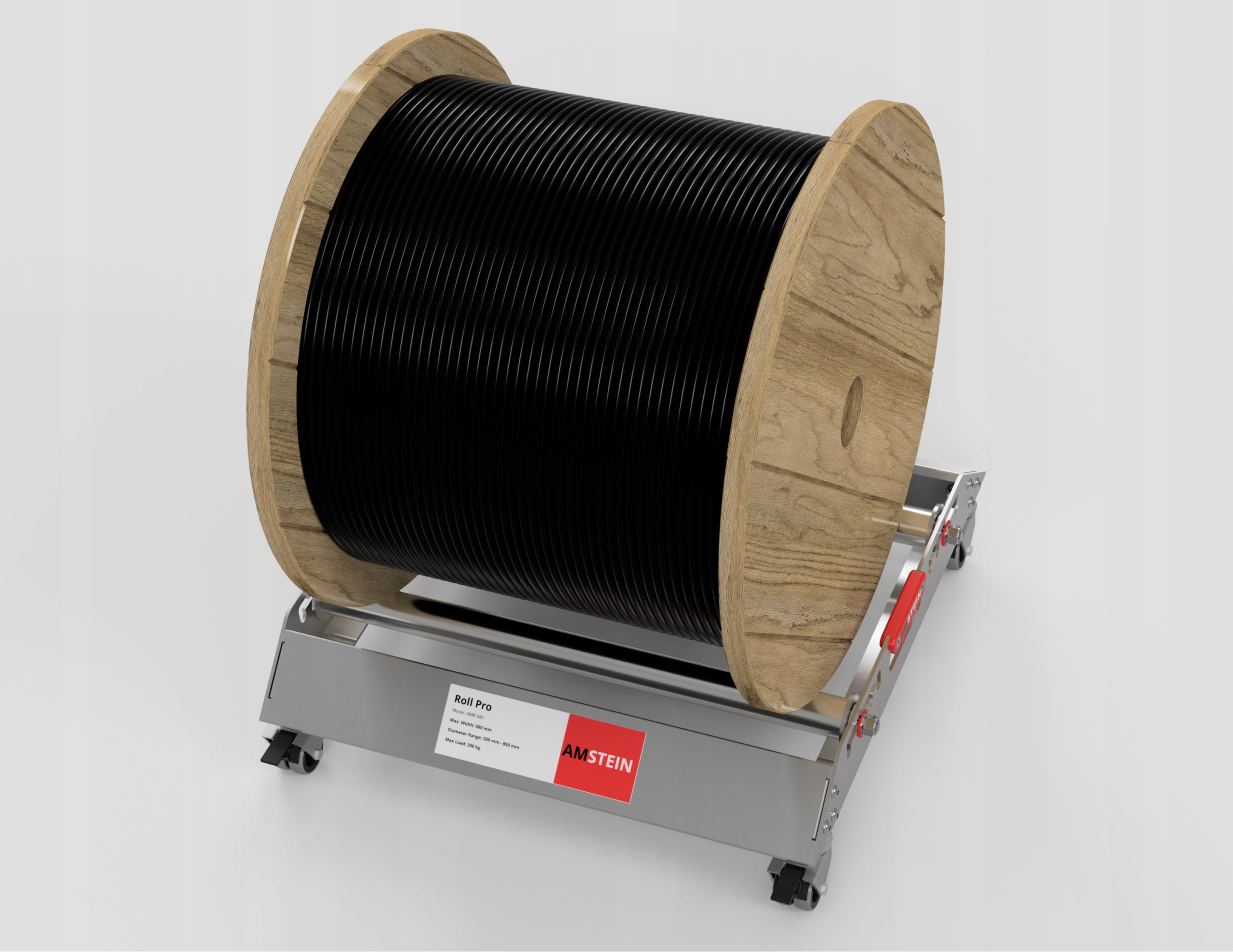 Model AMR-580 został wyposażony w 4-stopniową regulację rozstawu rolek, co umożliwia idealne dopasowanie do bębnów o średnicy od 200 mm do 850 mm. Rolki przesuwają się po wyznaczonych prowadnicach, a ich konstrukcja zapobiega przypadkowemu wypadaniu podczas regulacji – co znacząco zwiększa bezpieczeństwo użytkowania oraz wygodę obsługi.